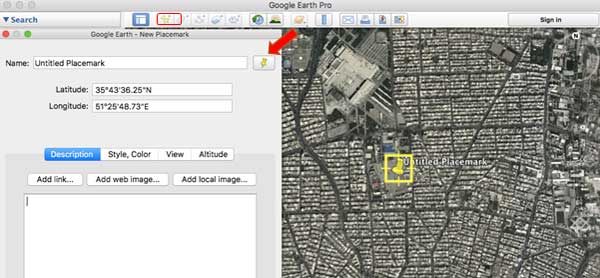همچنین میتوانید از طریق نماد Placemark نحوه نمایش نماد آن را تغییر دهید. پیشنهاد میشود از نمادهای نقطهای استفاده کنید تا محل دقیق نقطه علامتگذاری شده مشخص شود. در سایر نمادها ابهاماتی ازلحاظ محل دقیق قرارگیری وجود دارد.